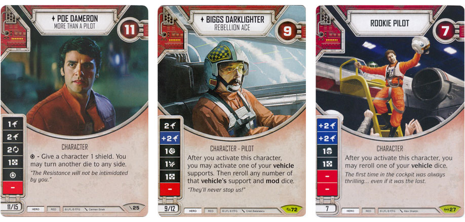 I have always liked playing vehicles, and for a while Rose was the best red character to do so with. I didn’t have any of the red characters from Across the Galaxy that have supplanted Rose in the meta, and I still liked her ability to make money. Plus, running Poe at elite made special chaining into her die plausible. My best available red character to round out the final eight points was a Clone Trooper. Sure, he comes with two blanks, but he also brings three black damage sides, and ability to reroll a character die, and eight health.